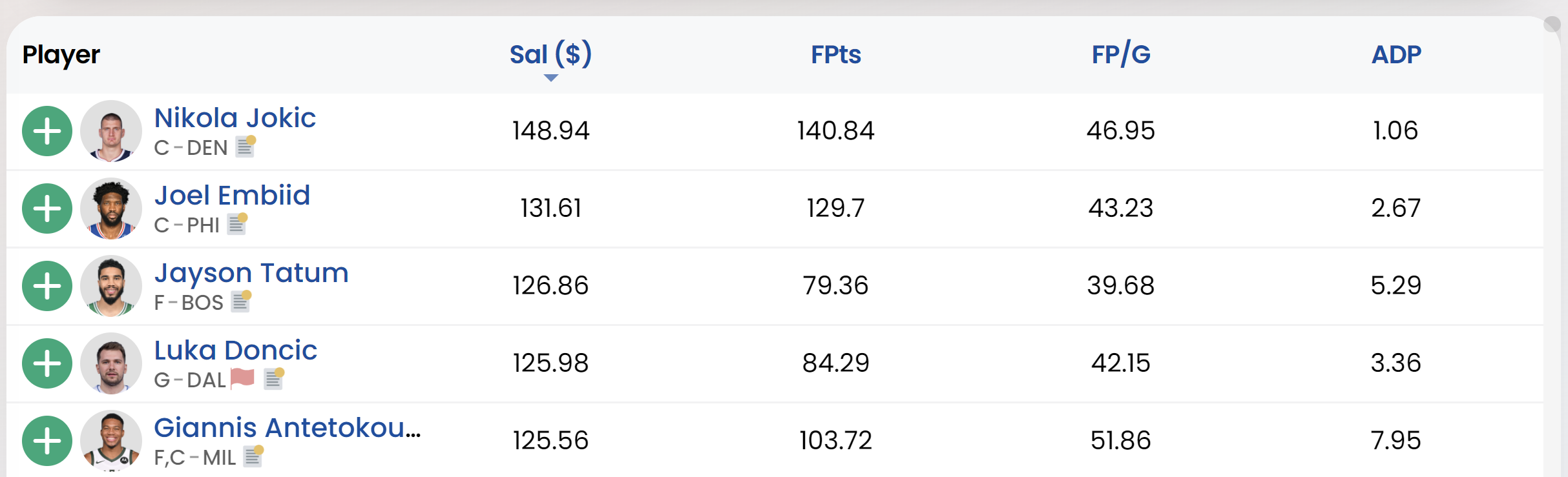 ADP: FANTRAX의 모든 판타지 바스켓볼 리그에서 해당 선수가 뽑힌 드래프트 순서