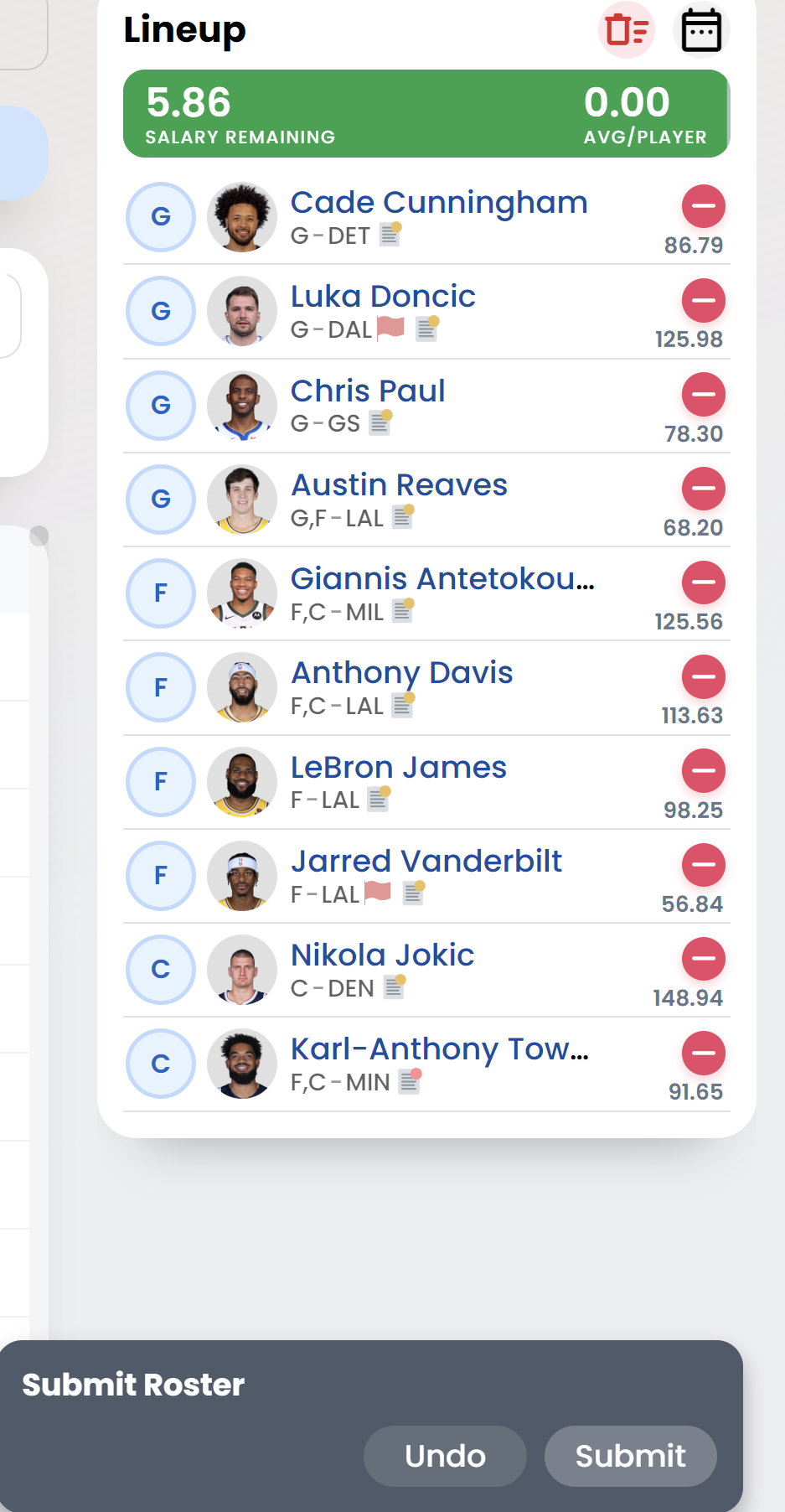 현재 로스터 10명의 샐러리의 합이 $1000이 넘지 않아야 선수 명단 등록이 가능합니다.